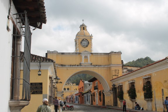 Henry and Tuk’s hotel didn’t have enough rooms for our party. We went to a hotel next door and took a look at a room with three double beds crammed up almost side-by-side. We are not yet that desperate. We move on down the street to a nicer hotel which again does not have enough vacancy for us all. Finally, we end up at Desconsa #2 which has the perfect arrangement – four single beds in one room and two double beds in another. We attempt to negotiate a better rate but rain is now coming down in buckets so his firm but fair price was quickly accepted. The brief rainstorm left water rushing down the streets. We text Jake the hotel information and head out into the darkening streets for a nearby restaurant. We ended up at Wiener. I can offer no explanation of this strange name but we highly recommend the food and tranquil atmosphere. We text Jake more information about finding us. We give up waiting on him and return to the hotel. He texts back that our directions are inadequate. Yes, he is quite lost. Being lost on the streets of Antigua at night isn’t recommended. Yes, mom is growing concerned. He finally shows up thirty minutes later to explain that he asked numerous shop keepers and police officers for directions and got completely different directions from each. To completey confuse the matters, there were two hotels by the name of Desconsa and two streets by the name of Saint Lucia. I asked if he was scared??? He confirmed that he wasn’t exactly enjoying the walk carrying his phone and all of his money and that the few people out and about looked more ominous in the darkness and all seemed to be eying him as he walked uncertainly up and down the same area, asking directions and shifting his unwanted backpack around. However, Jake is far, far ahead of us in Spanish language acquisition. He is getting quite conversant, can understand directions and is even venturing into pleasantries and conversational joking. At the other end of the spectrum, I stick with simple sentences and get either a blank stare or laughter at my quite unintended jokes. Salud Jake!